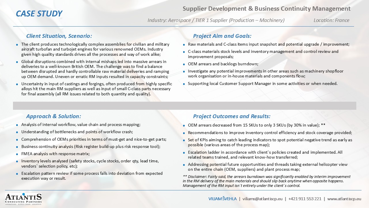 (Support given to French Tier 1 supplier to well-known British OEM Aeroengines manufacturer)